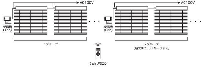 1グループ毎に1台の受信機が必要となります。