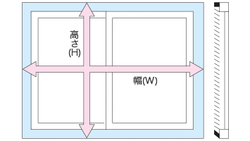 幅(W)・高さ(H)ともに、窓枠の外側と同寸法にしてください。