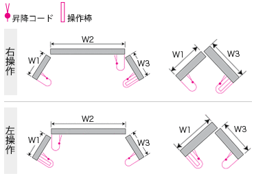 商品幅(W)寸法(W1+W3):42〜300cm ※操作側の最小は25cm、反対側の最小は17cm |