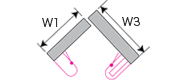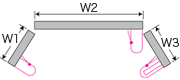 W1またはW3の寸法が25cm未満で、ヘッドボックスカットの場合、昇降操作(ストッパーの位置)は、端部ラダーコードの内側になります。