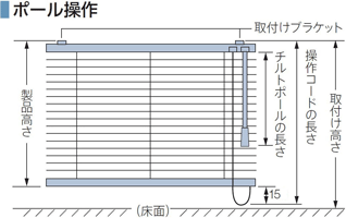 チルトポールの長さは 取付け高さ、操作コードの長さは 製品高さによってそれぞれ異なります。