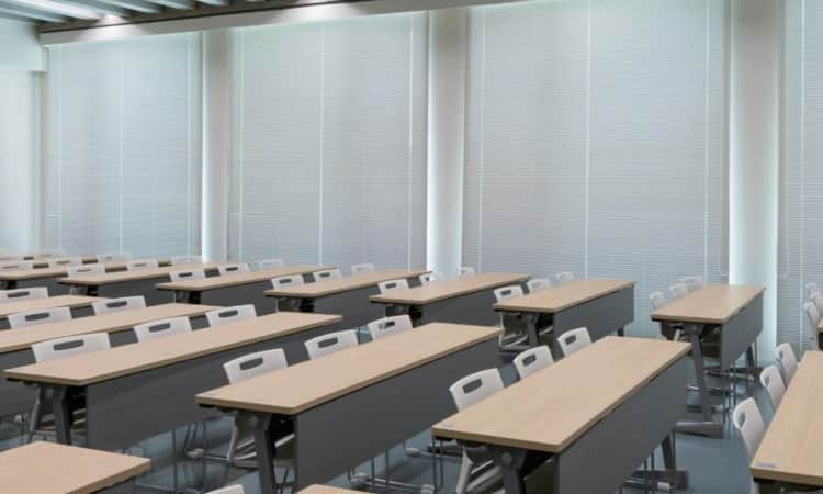 一般的なブラインドは、窓面がまぶしくなるだけでなくモニターなどに光が映り込むため、快適なオフィスとはいえません。しかしグラデーションブラインドなら、光を天井に反射させることで室内の奥まで自然光を取り入れることができ、明るく眩しさを感じない快適な空間を作ります。