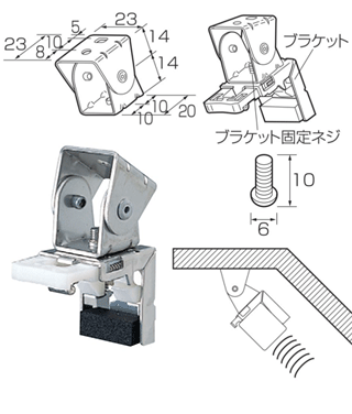 ※ブラケット取付け面と傾斜面が直角でない場合は自在金具(オプション)をブラケットに取付けてください。