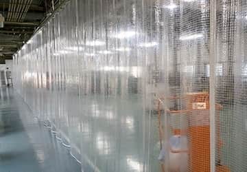 快適な作業環境に役立つ工場用ビニールカーテン。防炎・防塵・防音・防虫はもちろん、糸入りビニールなど機能満載な工業用間仕切り。