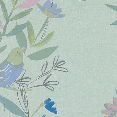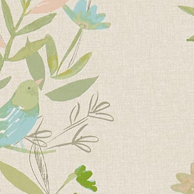 生い茂った草花の中で、可愛い小鳥が生き生きとさえずる様子を描きました。多彩な色使いのモチーフは、絵画のような深みを与えます。