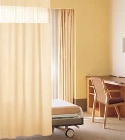 松装オリジナル「医療用カーテン」は、病室や老人福祉施設のベッド周り、診察室の間仕切りとしてお使いいただける病院・医療施設用のネット付きカーテンです。