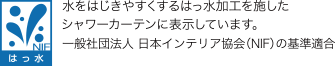 シャワーカーテン専用の縫製仕様です。吊り元はハトメ仕様になっており、専用のフック(Sカン)を使用しての取り付けとなります。折返し仕様、超音波カット仕様(波型または直線)のいずれかからお選びいただけます。