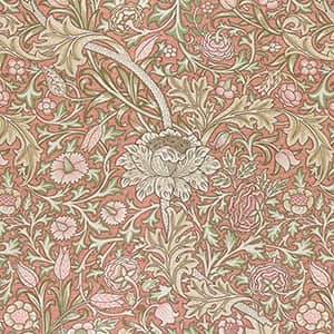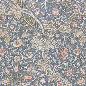 豊かで生命力あふれる花柄が印象的なデザインで、1888年にモリス商会によってプリントテキスタイルとして誕生しました。ウィリアム・モリスらしい美意識が随所に感じられ、伸びやかなリピートと巧みに構成されたパターンが、空間に広がりをもたらします。生地のベースには、意匠糸と織りの工夫を凝らし、ナチュラルで味わい深いテクスチャーに仕上げています。