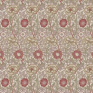 1890年にウィリアム・モリスによってデザインされた壁紙のデザインです。絡み合う曲線で描いたバラとカーネーションを、光沢のある糸で立体的に感じられるよう織り上げ、コットンのようなナチュラルな風合いに仕上げました。「ピンク」とはカーネーションと同種であるナデシコの英名です。