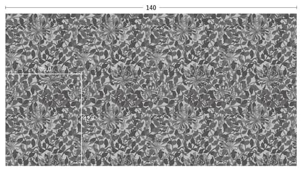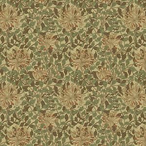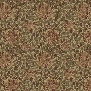 1883年にウィリアム・モリスの次女メイによって製作された壁紙のデザインを織物にしました。スイカズラの花がつる性の丸みのある細かな葉の中に見え隠れするデザインです。色糸の交織が程よい深みを与えています。