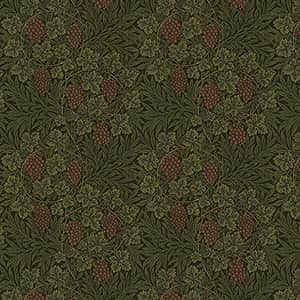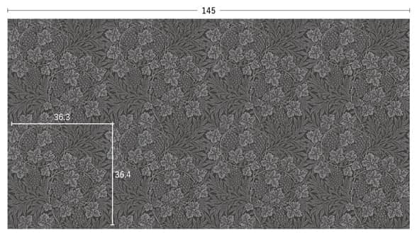 1874年に製作されたウィリアム・モリスの壁紙のデザインを織物にしました。明瞭に渦巻く葡萄の蔓のトレーサリ(モリス特有の渦巻く流れのある更紗)がモリスらしさを表現しています。葡萄の立体感を糸を工夫して表現し、深みのある織物に仕上げています。