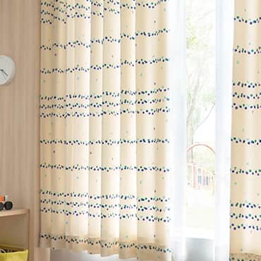 生地の織り密度や糸の太さからくる硬さや反発でカーテンが横方向に広がってしまうことを抑える加工です。薬剤などを一切使わないで加工するので、環境にも安全で安心してご使用いただけます。