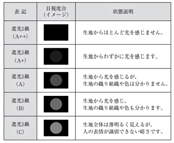 | 等級 | 遮光1級 | 遮光2級 | 遮光3級 |