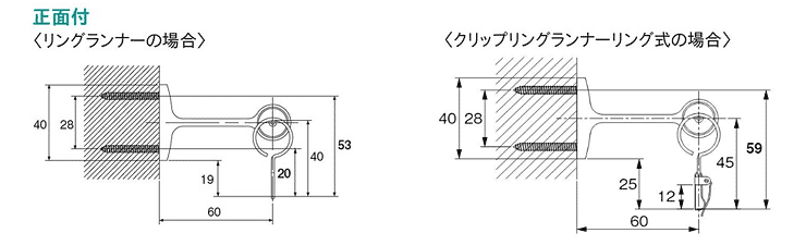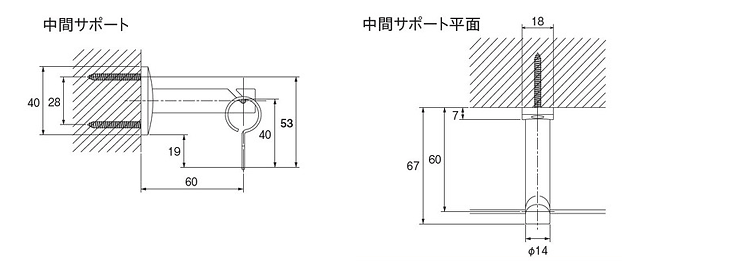 ワイヤーにテンションをかけて引っ張るため、必ず下地を確認してから取付けてください。コンクリート駆体以外の下地の場合には補強(板厚25mm以上)が必要です。