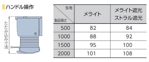 ハニカムスクリーンをすべてたたみ上げた時の、取付ブラケット上端からボトムレール下端までの寸法です。