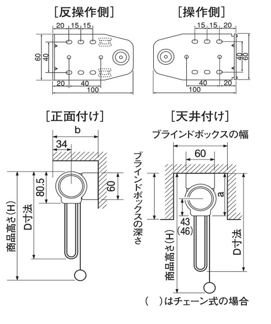 ※D寸法は正面付けの場合です。天井付けはブラケット分、