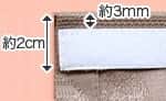 生地の上部分を約2cmほど裏側に折り返します。生地の裁断部分(切り離し部分)を覆うようにマジックテープを重ね、縫い付けます。