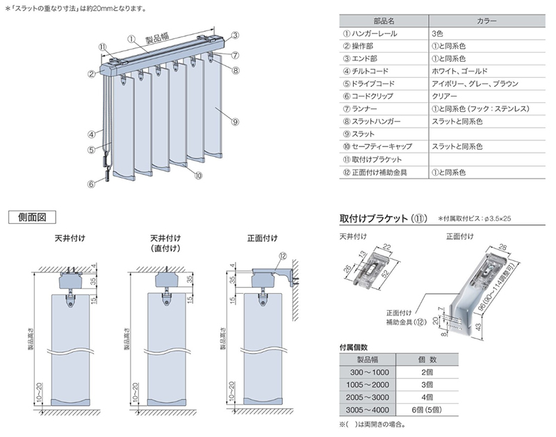 ※「スラット(ドレープ)の重なり寸法」は約20mmとなります。