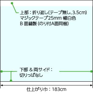 上部折り返しマジックテープ仕様、両サイド&下部切りっぱなしのシンプルな透明ビニールカーテンです。ハサミ等で簡単にカットして調整できます。