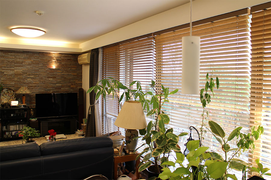 臨家からの視線を遮る目的で付けたのですが、かえって部屋がお洒落になりました。