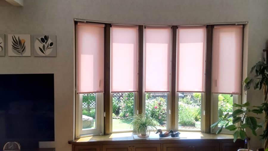 庭の草花が映える景色を楽しむために、採光タイプの生地を採用しました。思い切ってパステル調のピンクを選び大正解でした。
