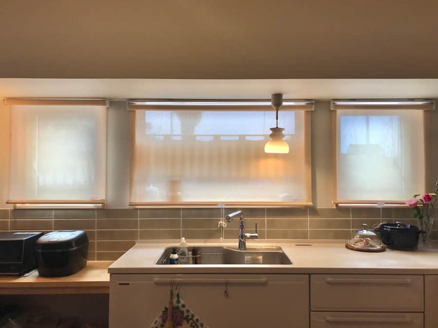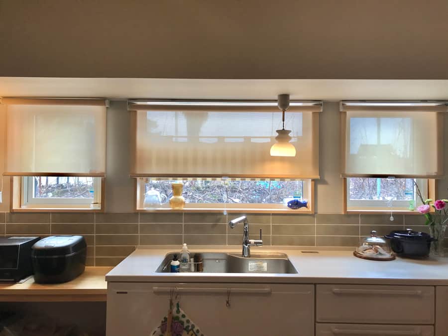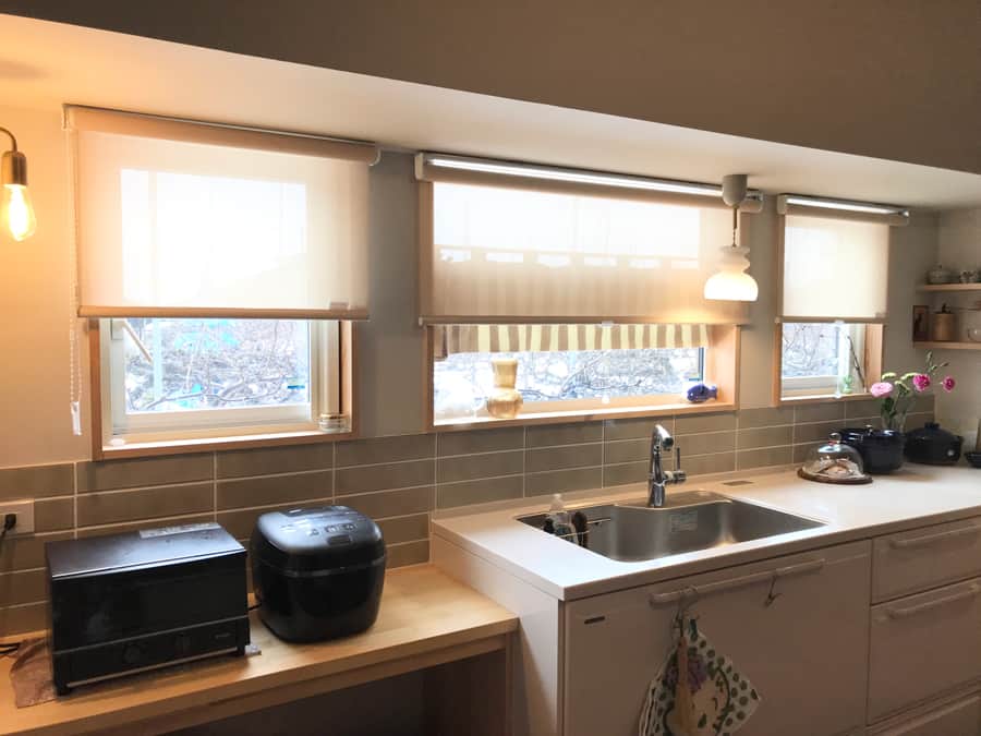 北側のキッチンがuv加工と遮熱機能により快適に過ごせるようになりました。柔らかい色の陽射しになり心地よいです。