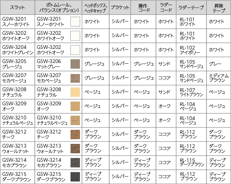【品番について】(GSW-):スラットカラー / (RL-):ラダーテープカラー